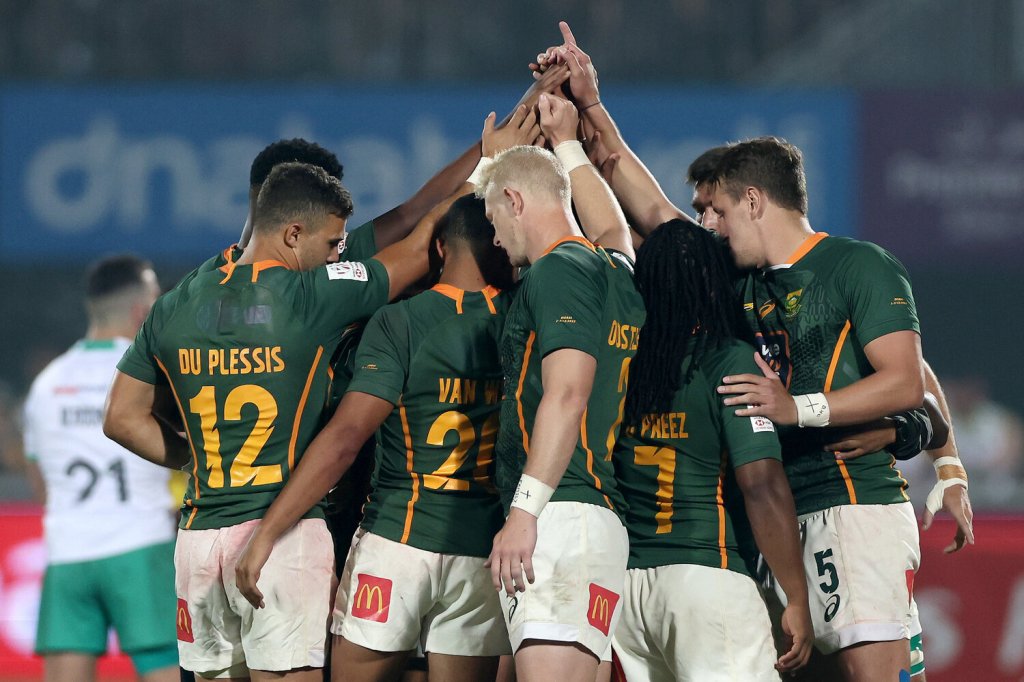 The Springbok Sevens, who kicked off their title defence with a loss to Great Britain on Friday, outscored the Irish three tries to one in the finale for a 21-5 win to prove no team does it better in the desert than SA.